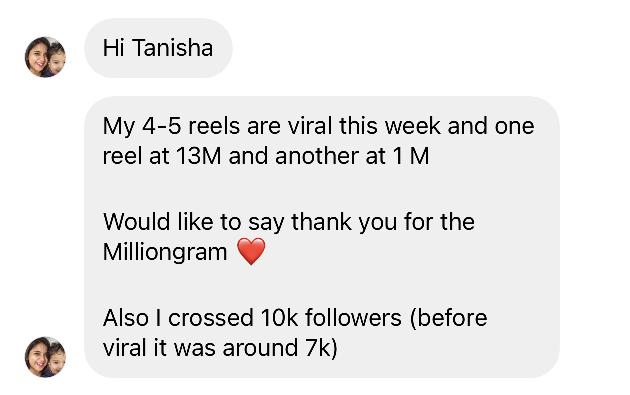 Pooja started with 700 followers before MillionGram. Now, she has reached her 80k milestone with ease.